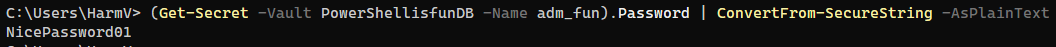 -credential (Get-Secret -Vault PowerShellisfunDB -Name adm_fun)