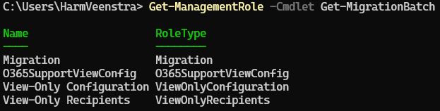 This will display the roles required for showing the Migration batches in your environment. Sometimes, the cmdlet requires specific permissions, but the Parameters could require additional permissions. You can also specify a Parameter to query the required permissions, for example: