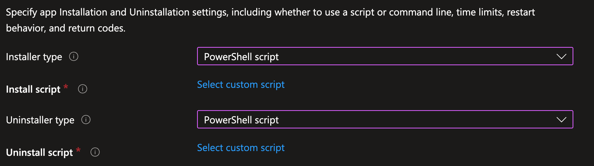 Microsoft has made the PowerShell Script file option available to prevent that; the package containing all of the installation files doesn’t need to be recreated and uploaded. Instead, you can upload the small-changes PowerShell script, and you’re done 🙂 (This applies to both install and uninstall scripts.)