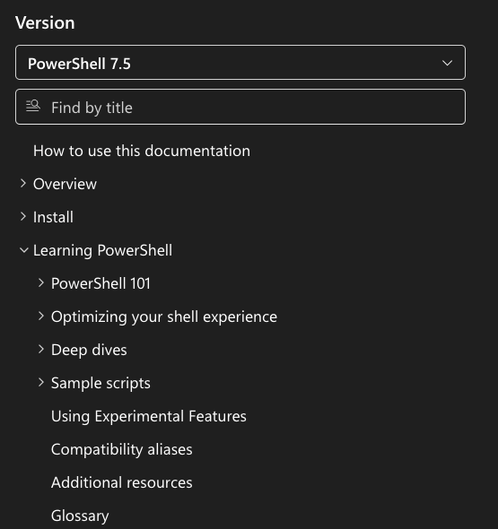 There is so much documentation on PowerShell on Microsoft Learn, but this section is a great place to start learning and exploring, with clear examples, how-tos, and explanations of concepts. You can find it here: https://learn.microsoft.com/en-us/powershell/scripting/learn/glossary?view=powershell-7.5 and expand the tree below ‘Learning PowerShell’